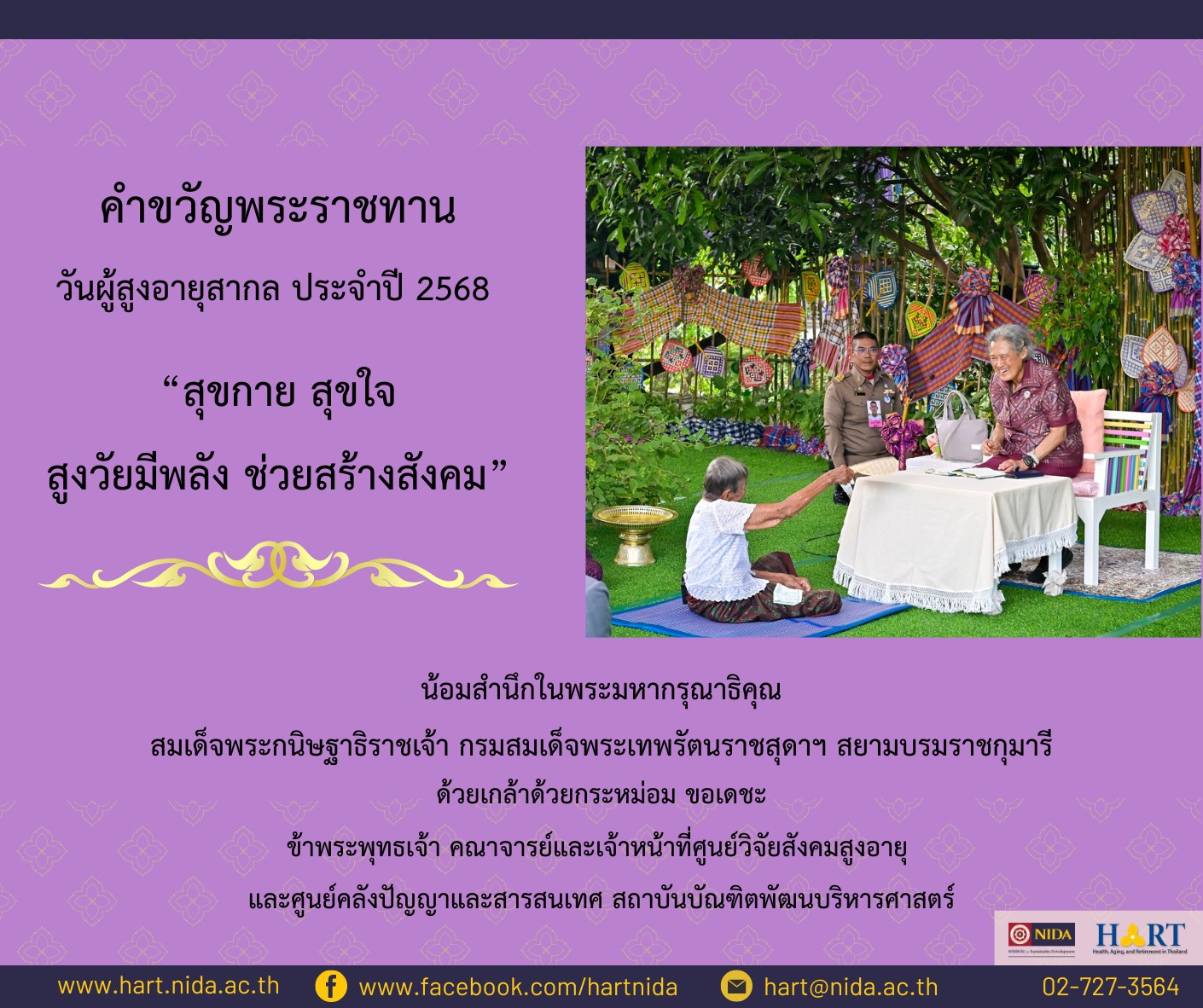 Retirement in Thailand: HART) เป็นโครงการภายใต้ศูนย์วิจัยสังคมสูงอายุ สถาบันบัณฑิตพัฒนบริหารศาสตร์ โดยมีวัตถุประสงค์เพื่อสร้างฐานข้อมูลการสูงอายุของประชากรผู้สูงอายุไทย ในลักษณะการเก็บตัวอย่างซ้ำทุก ๆ 2 ปี เพื่อนำมาจัดทำเป็นรายงานสถานการณ์สูงอายุในประเทศไทย และเผยแพร่ฐานข้อมูล
