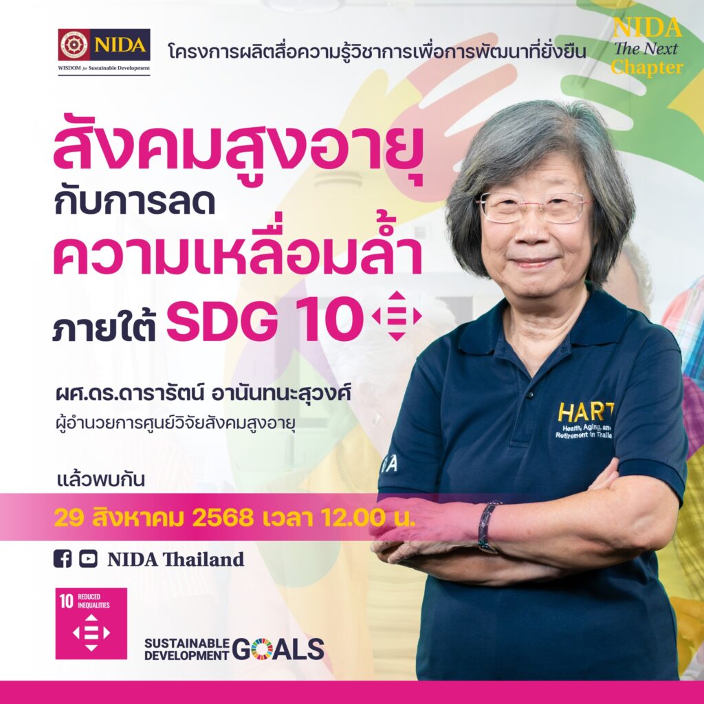 #NIDA#SDG10#SDG#สังคมสูงอายุ#ลดความเหลื่อมล้ำ#NIDA#SustainableDevelopmentGoals#สถาบันบัณฑิตพัฒนบริหารศาสตร์#นิด้า#NIDAThailand#นิด้ามหาวิทยาลัยในกำกับของรัฐ#WISDOMforSustainableDevelopment#สร้างปัญญาเพื่อการพัฒนาที่ยั่งยืน