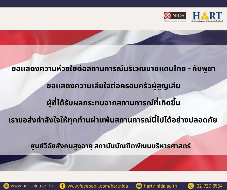 ศูนย์วิจัยสังคมสูงอายุ สถาบันบัณฑิตพัฒนบริหารศาสตร์ ขอส่งความห่วงใยและกำลังใจ 💙 ให้พี่น้องประชาชนในพื้นที่ชายแดนไทย–กัมพูชา